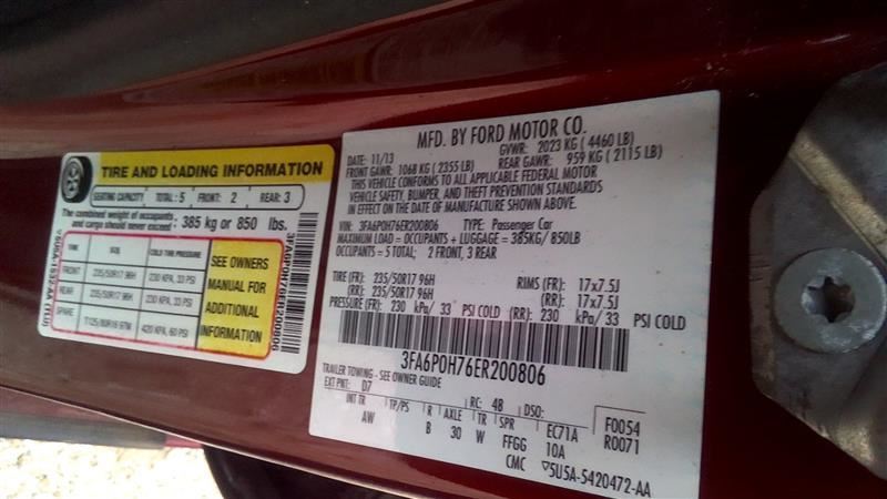 FUSION 13-14 floor, AT, w/o ambient interior lighting; w/power point plug