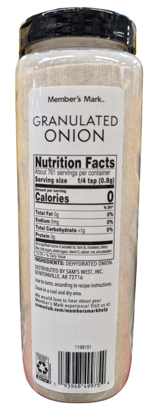 Member's Mark Granulated Onion 21.5 Oz EXP 06/2028