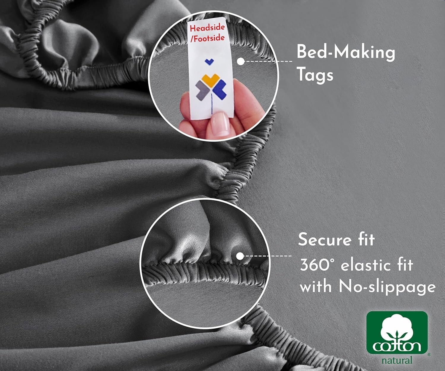 Machine Washable Full Size Cotton Sateen Fitted Sheet - Elegant Grey Design