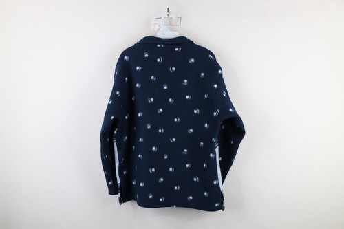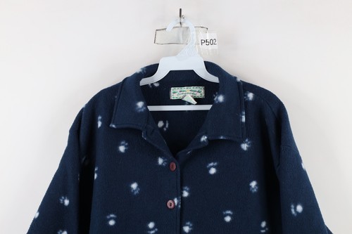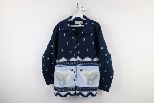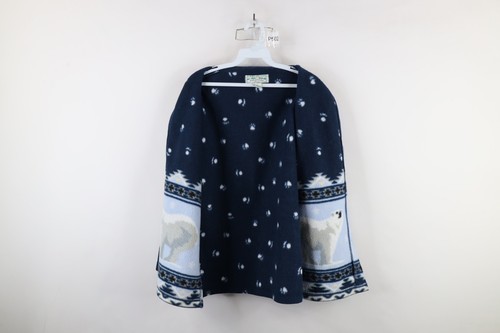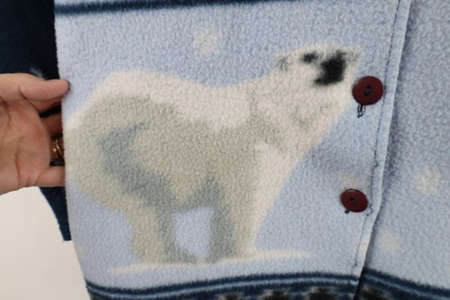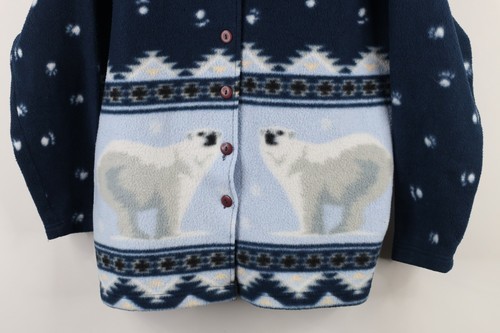 Vtg 90s Womens Medium Christmas Polar Bear All Over Print Fleece Button Jacket