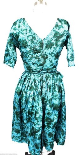 VTG 1950s Turquoise Print Day Dress Wide and 43 similar items