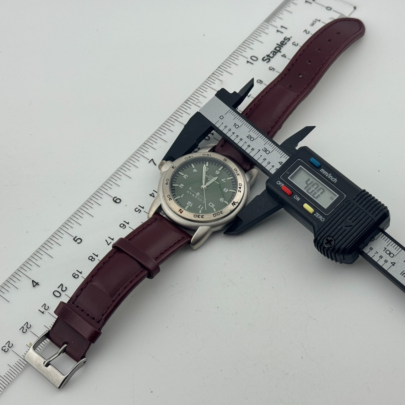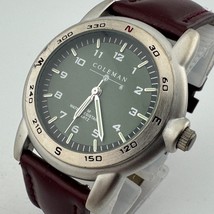 VTG Coleman Quartz Watch Men 30m Silver Green Fixed Bezel Leather New Battery