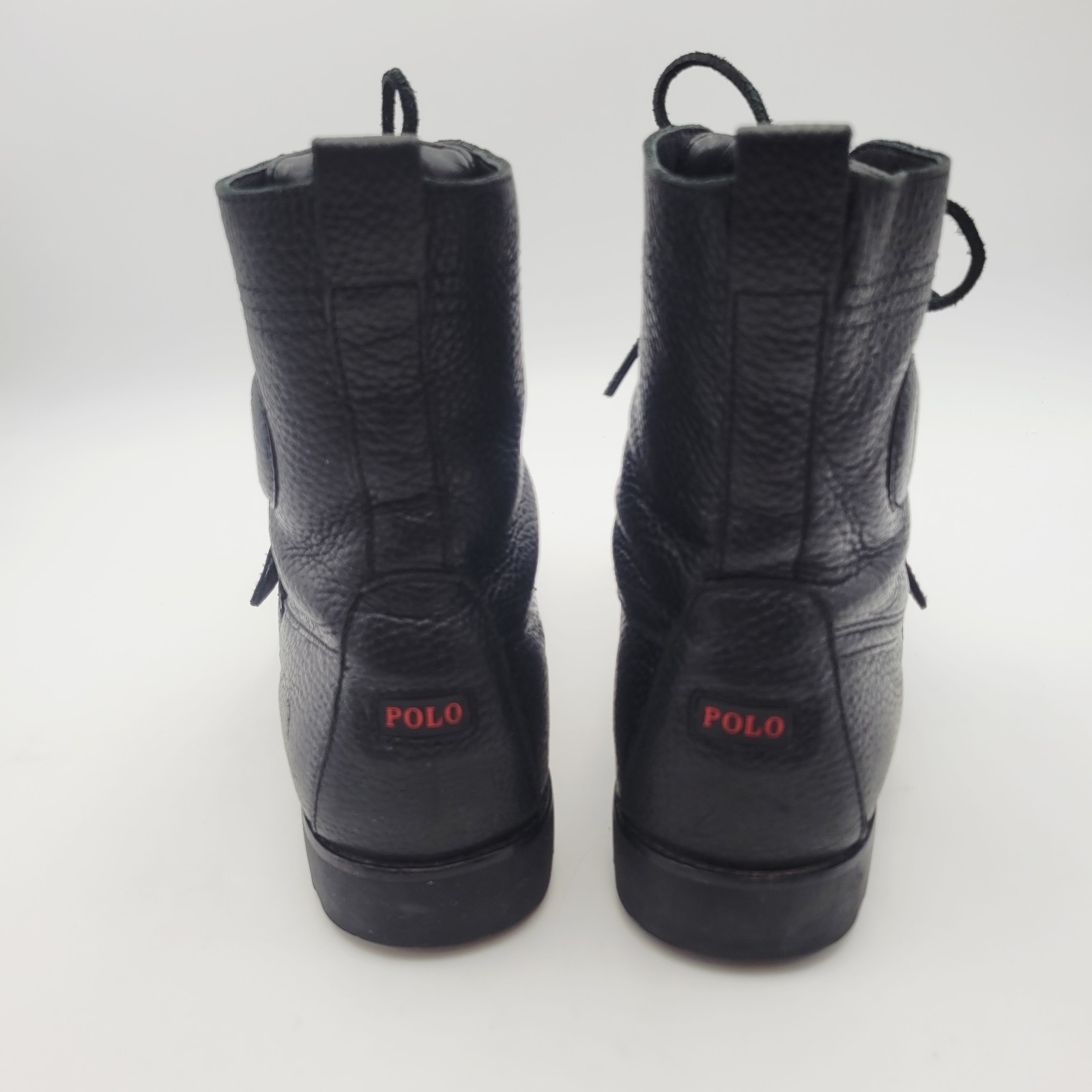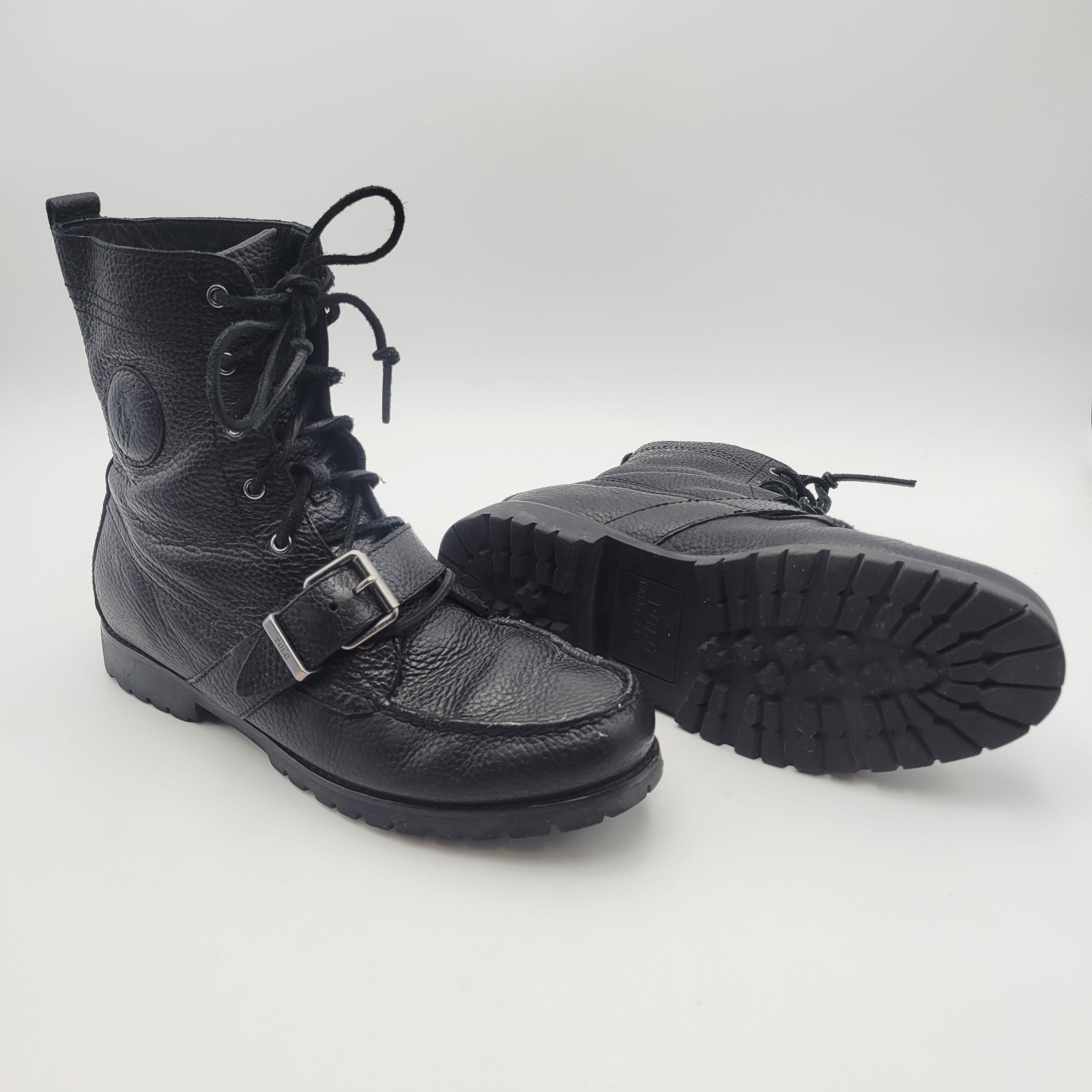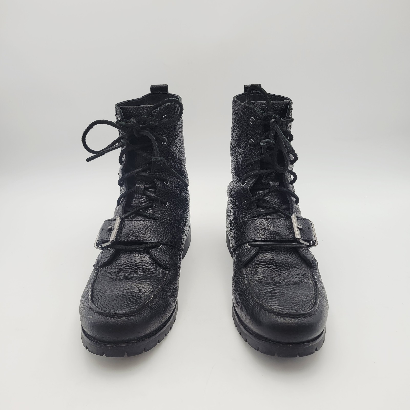 Polo Ralph Lauren Ranger Leather Buckle Lace-Up Boots Black Menโs Size 9 D Comba