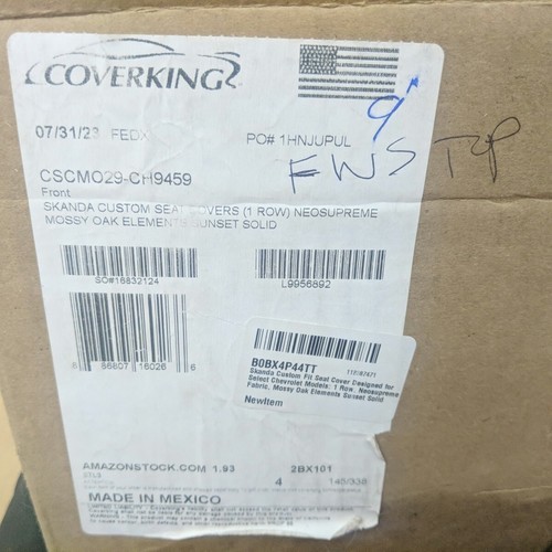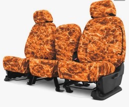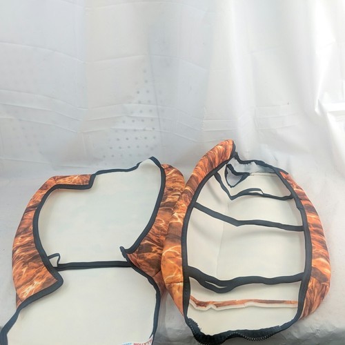 Exact item set is shown. New open box with partial original packaging. Mossy Oak orange sunset custom pattern, 9 piece neoprene set. Hook and loop / clamp-on attachment. Includes the instructions and other mounting accessories shown. Made in Mexico. No returns on installed items or partial sets. This item is a new, opened customer return. It has been inspected and passed quality control to insure the condition described and contents are accurate. Please review actual photos as stock photos are not the actual item, our photos are. You will ONLY receive exactly what is shown in photos, regardless of what might have originally been included. Please review our business policies in our store for information regarding returns, shipping and warranties.
