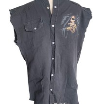 Spiral Direct Men Sleeveless Stone Wash Worker Grim Reaper Middle Finger Size M