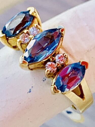 VTG 14 Karat Yellow Gold Ring Three Blue and 49 similar items