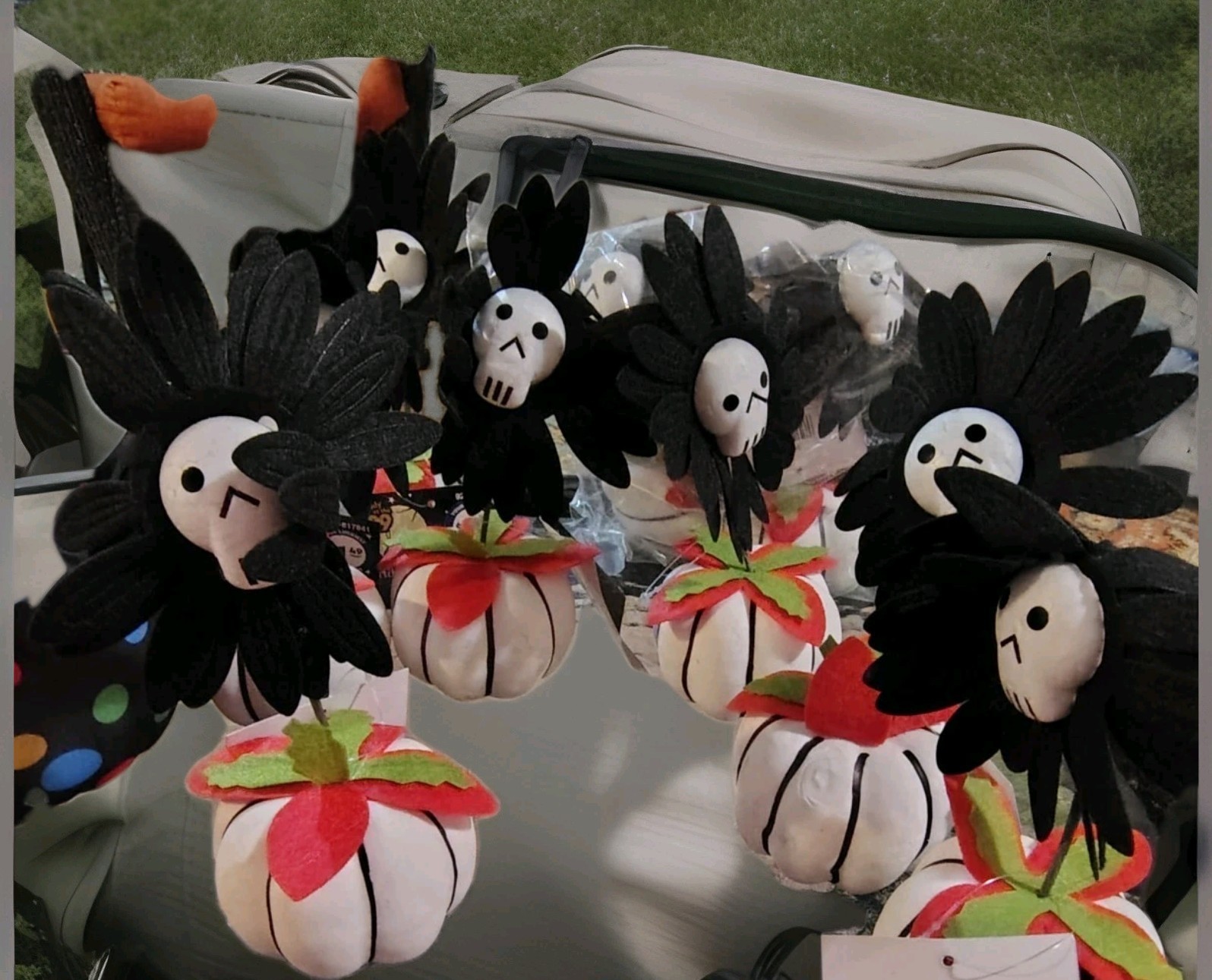 New big lot of 17 Halloween foam printed pumpkins and flower skeletons figurines, each measuring 5 inches in size. These colorful decorations from Momentum Brands are perfect for adults looking to add a touch of fantasy and seasonal charm to any room during the Halloween occasion. Made from foam, plastic, and fabric materials, these medium-sized figurines feature pumpkins and Halloween characters, making them a fun addition to your holiday decor collection.
