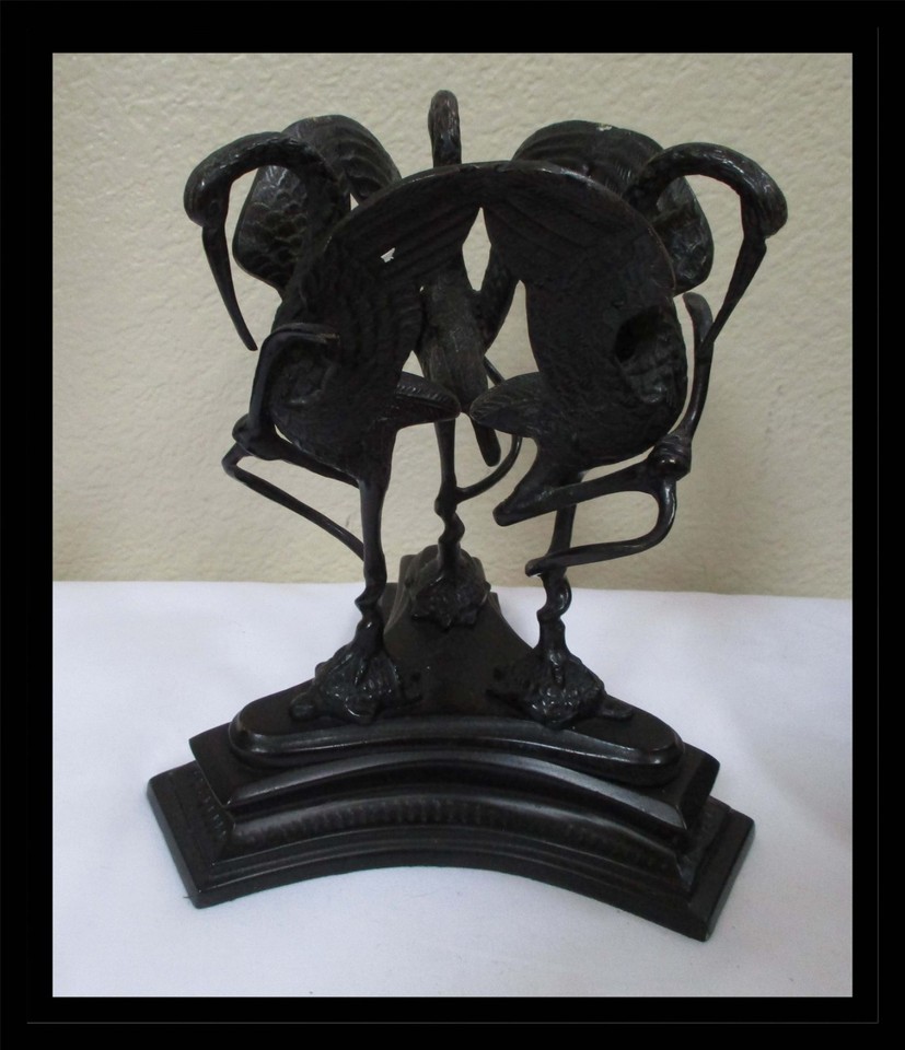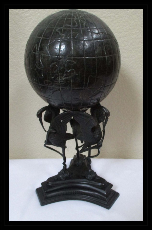 Vintage Castilian Imports Black Metal Globe on Black Metal Cranes Stand 12-1/2"