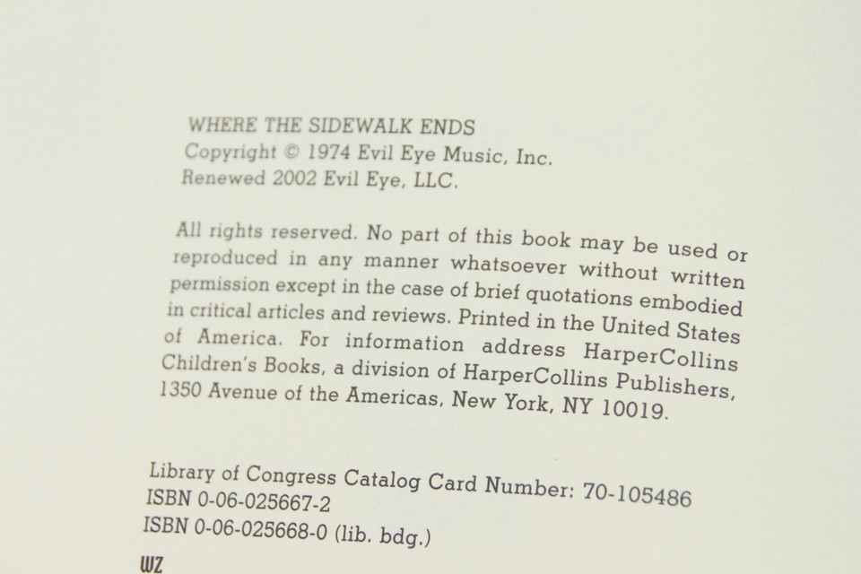 Where The Sidewalk Ends HC/DJ 1974 1st Ed Evil Eye Printing Silverstein VG+