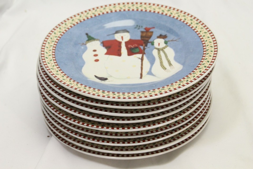 Sakura Snowman Salad Plates Debbie Mumm Christmas 8" Lot of 9 Xmas