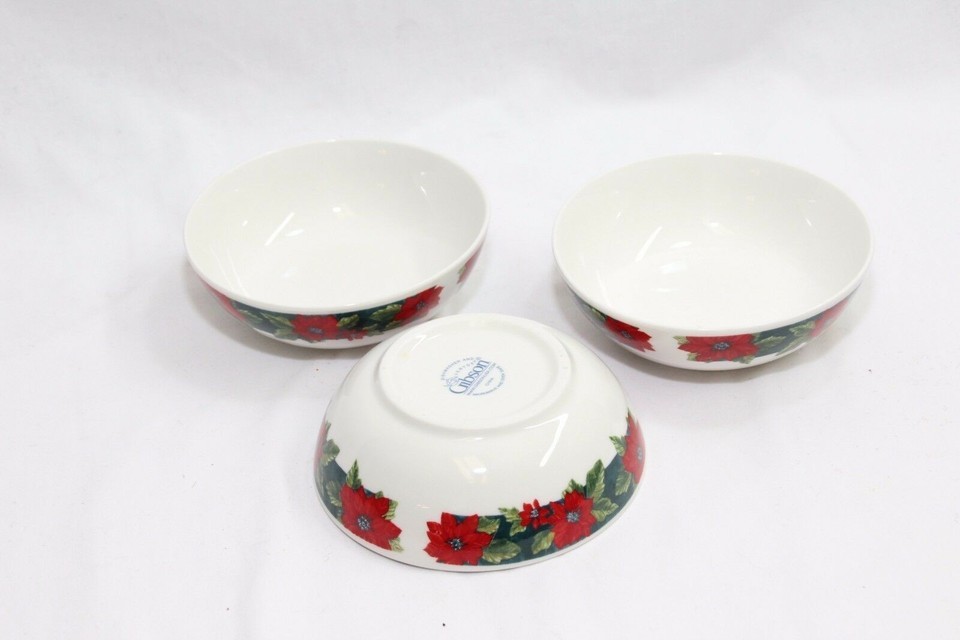 Gibson Poinsettia Christmas Holiday Plates Bowls Cup Lot of 9 Xmas