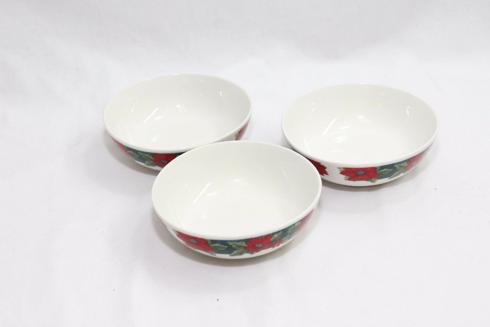 Gibson Poinsettia Christmas Holiday Plates Bowls Cup Set of 9
