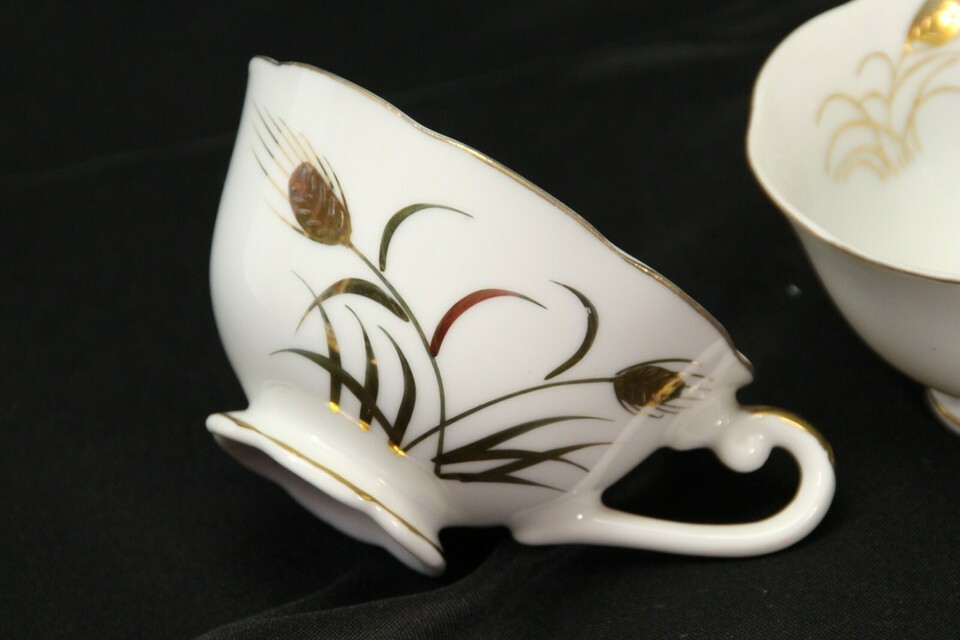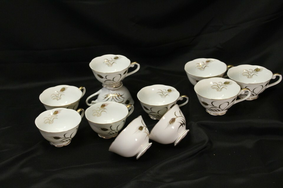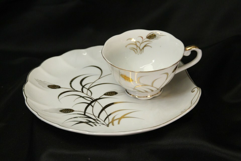 Lefton Wheat Gold Snack Plates 9 Plates and 11 Cups
