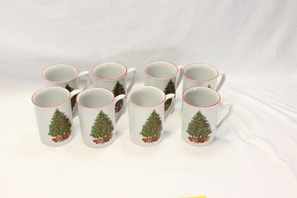 Holiday Time Xmas Tree Mugs Set of 8