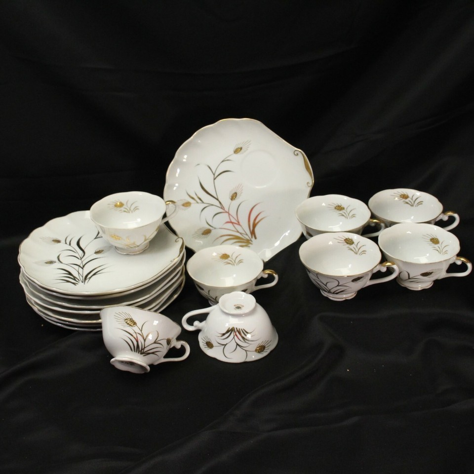 Lefton Wheat Gold Snack Plates 8 Plates 8 Cups Lot of 16