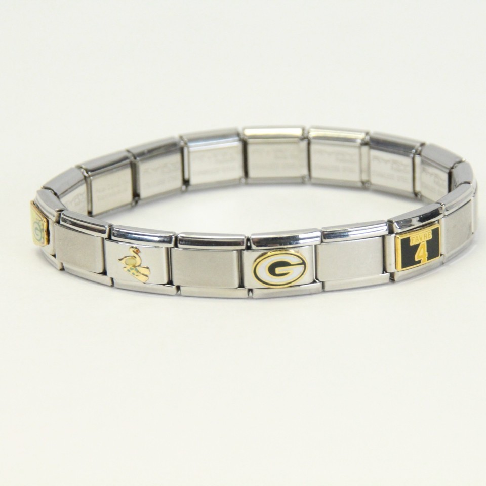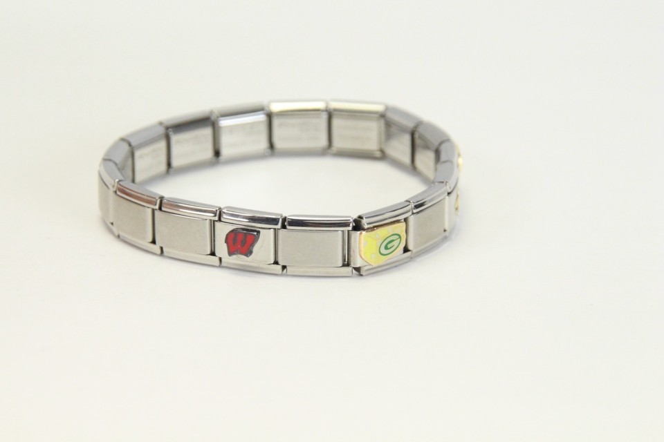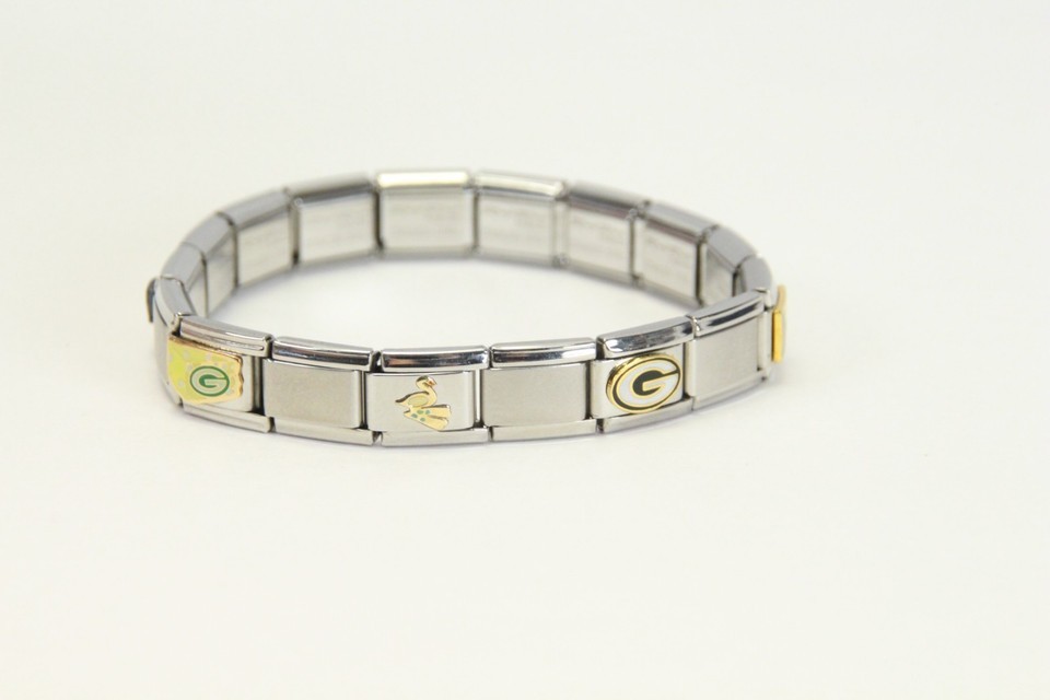 Green Bay Packers Modular Stainless Steel Slide Stretch Bracelet 17 Charms