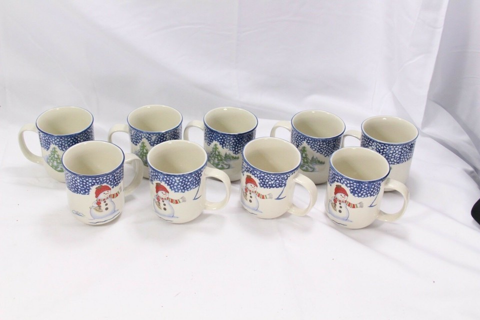 Thomson Pottery Snowman Christmas Mugs Lot of 9 Xmas