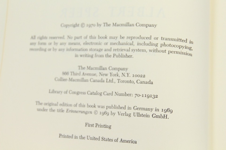 Inside the Third Reich Memoirs Albert Speer 1970 1st Printing
