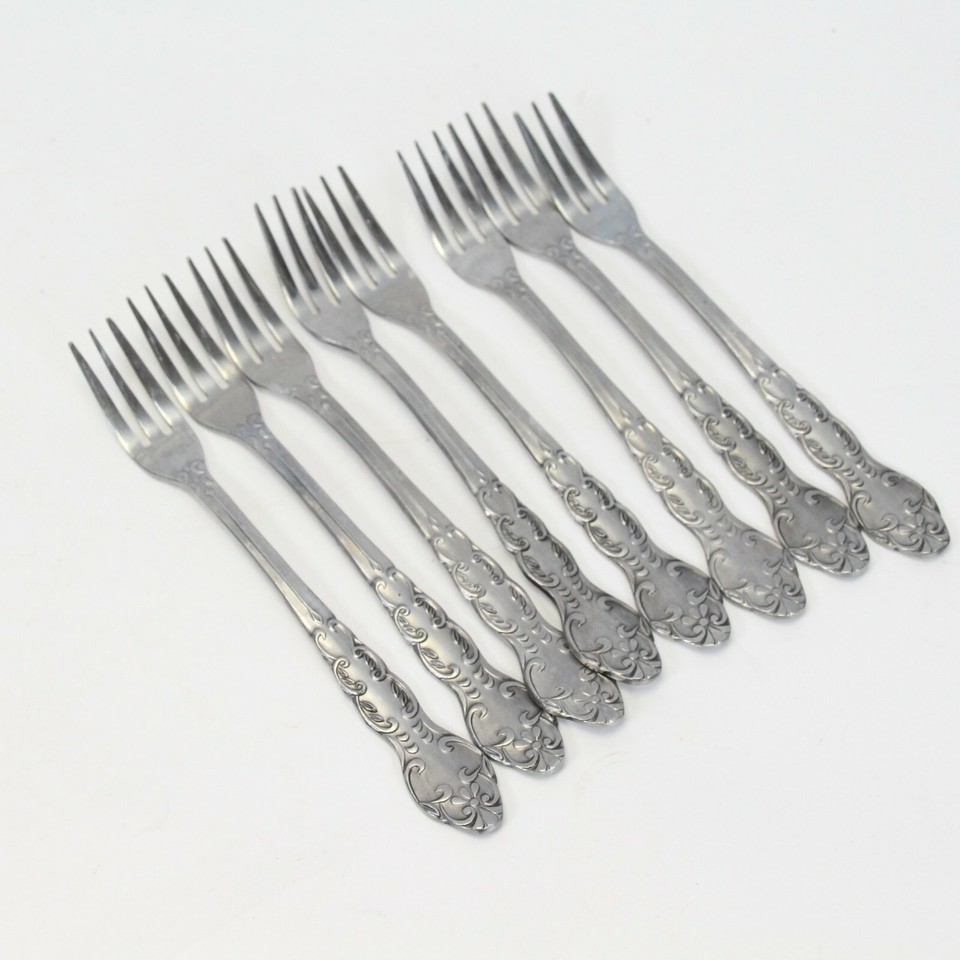 National Stainless Fancy Nancy Seafood Cocktail Forks 5-3/4" Lot of 8