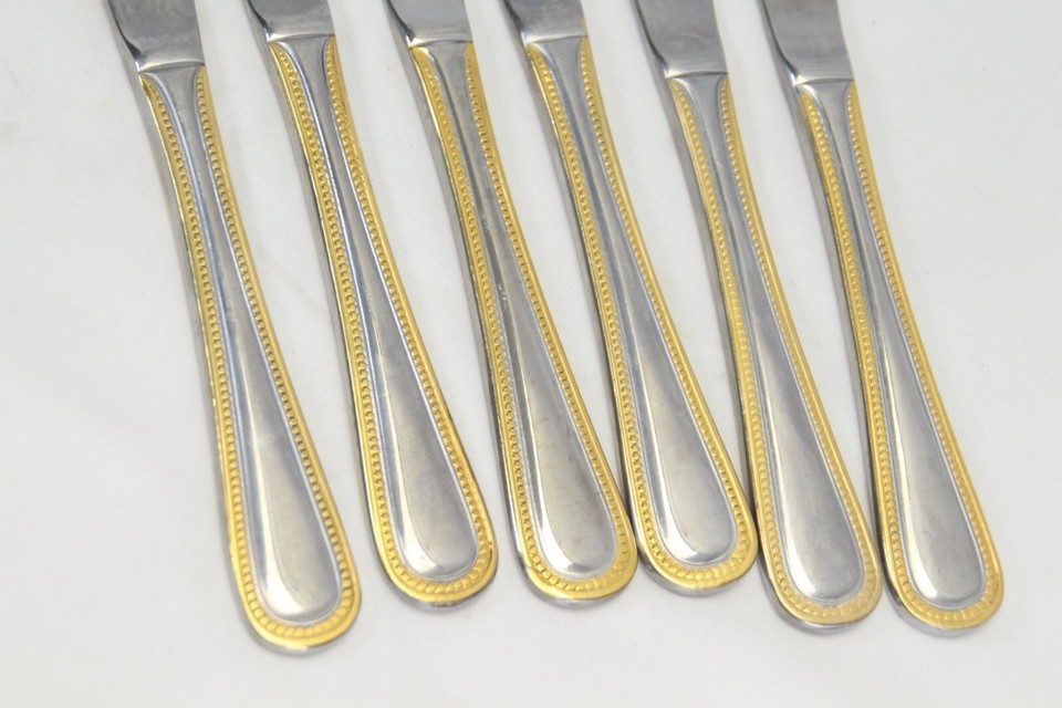 International Royal Bead Gold Accent Dinner Knives 8-1/2" Stainless Lot of 6
