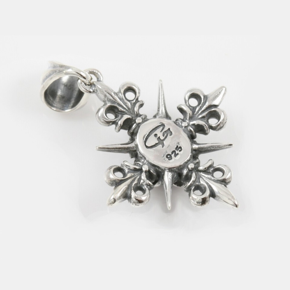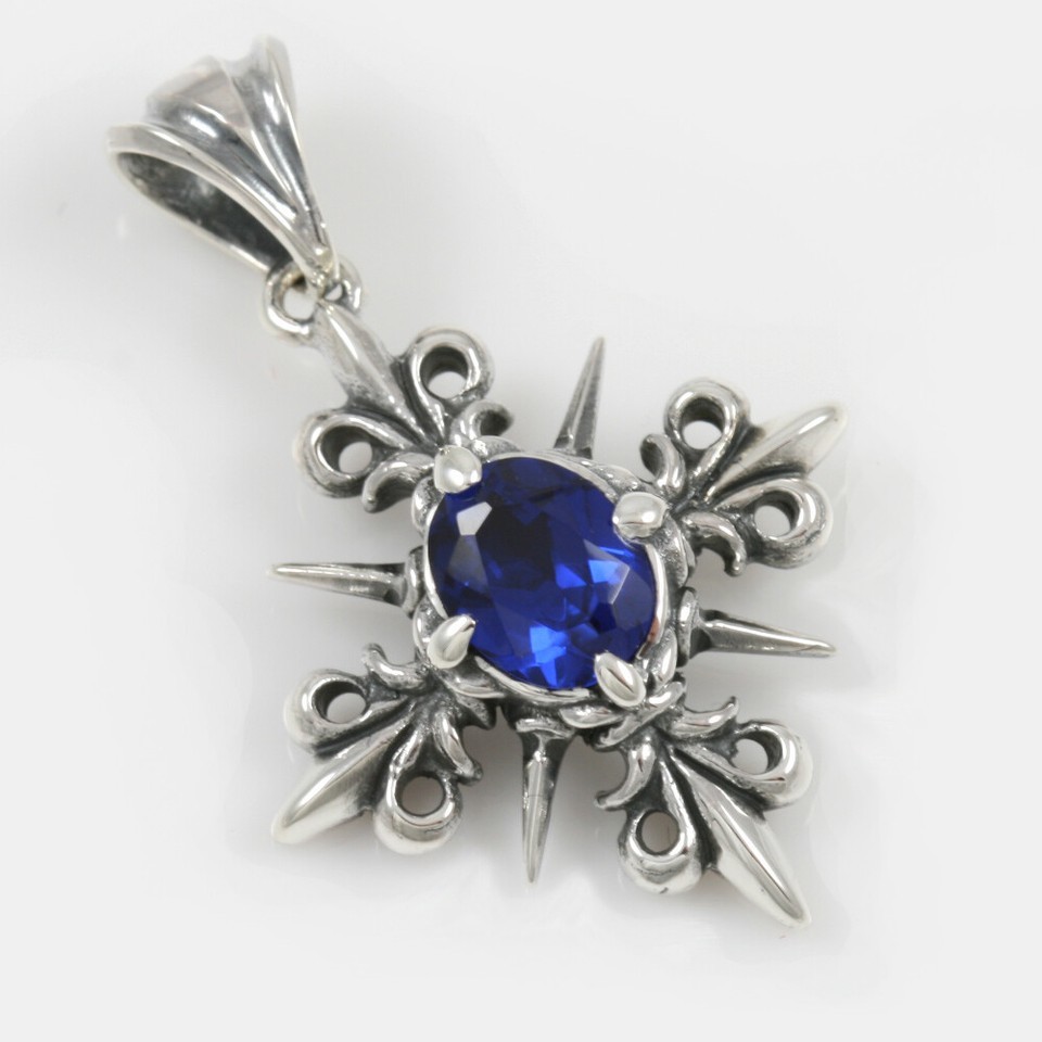 Royal Cross Fleur-de-lis Design Sterling Silver Pendant w/Blue Zircon GI™Stamped
