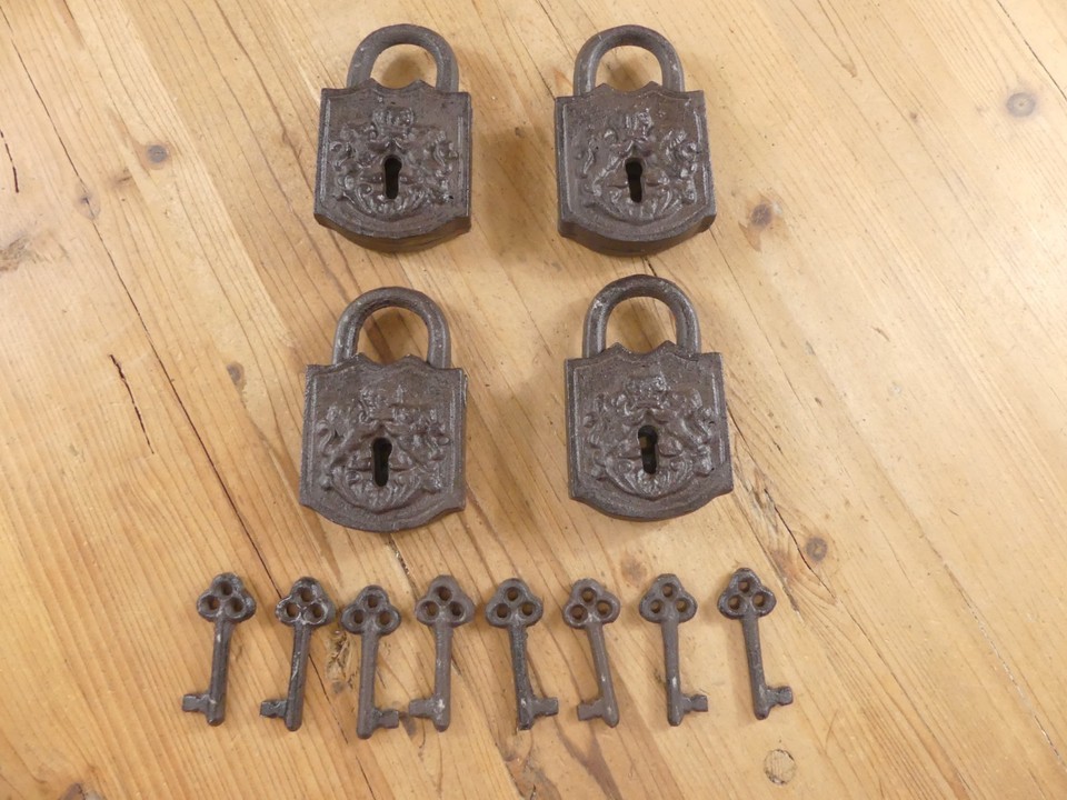 4 Cast Iron Lock And Key Sets Large Antique and 50 similar items