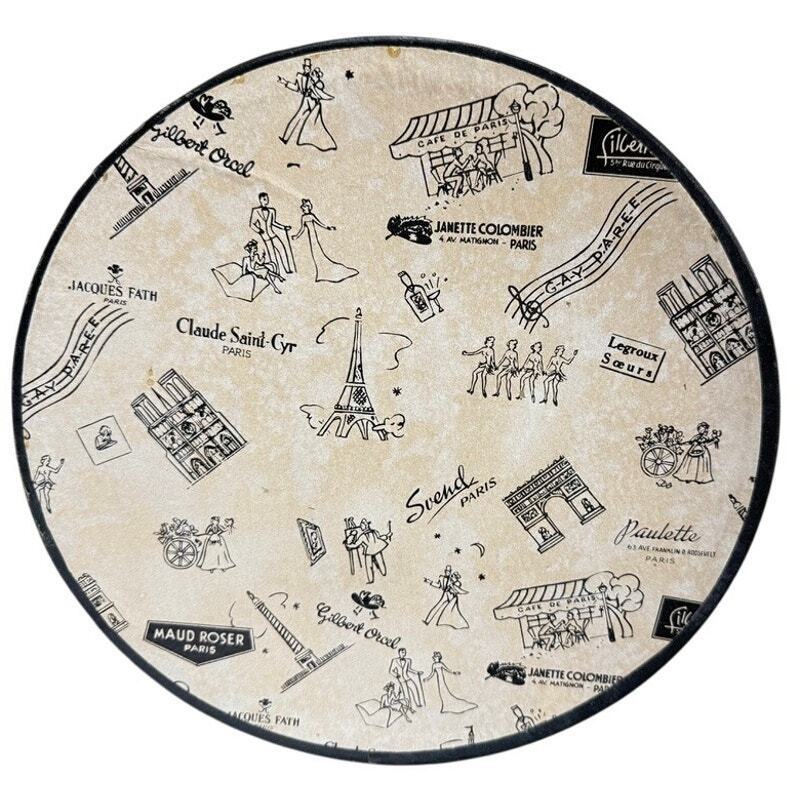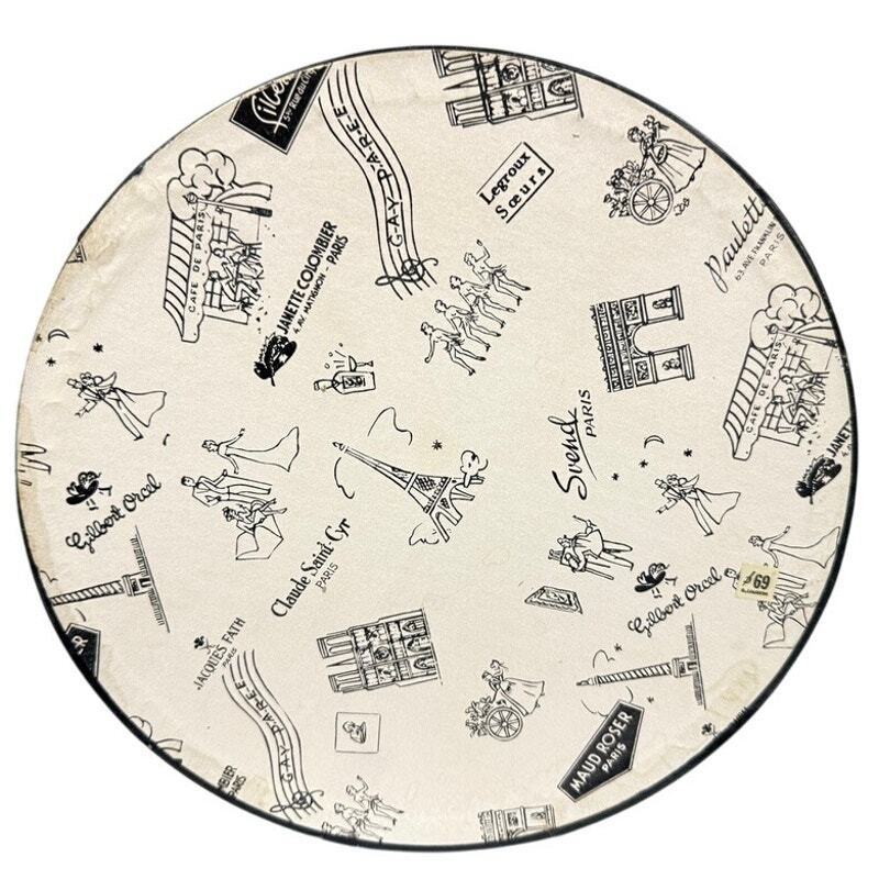 1950s Parisian Wallpaper Hat box Gilbert Orcel Simone Gange Fath Original 11x6.5