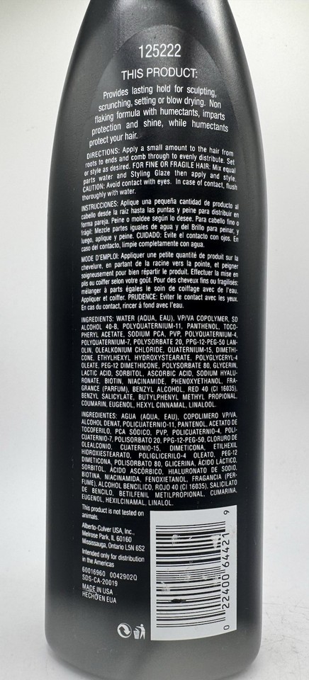 One (1) bottle Tresemme 4 + 4 Styling Glaze Super Hold 15 fl oz For Sheen Body Volume.