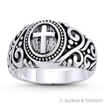 Cross Filigree Christian Catholic Charm 3mm to 11mm Signet-Style Women's Ring in Oxidized .925 Sterling Silver