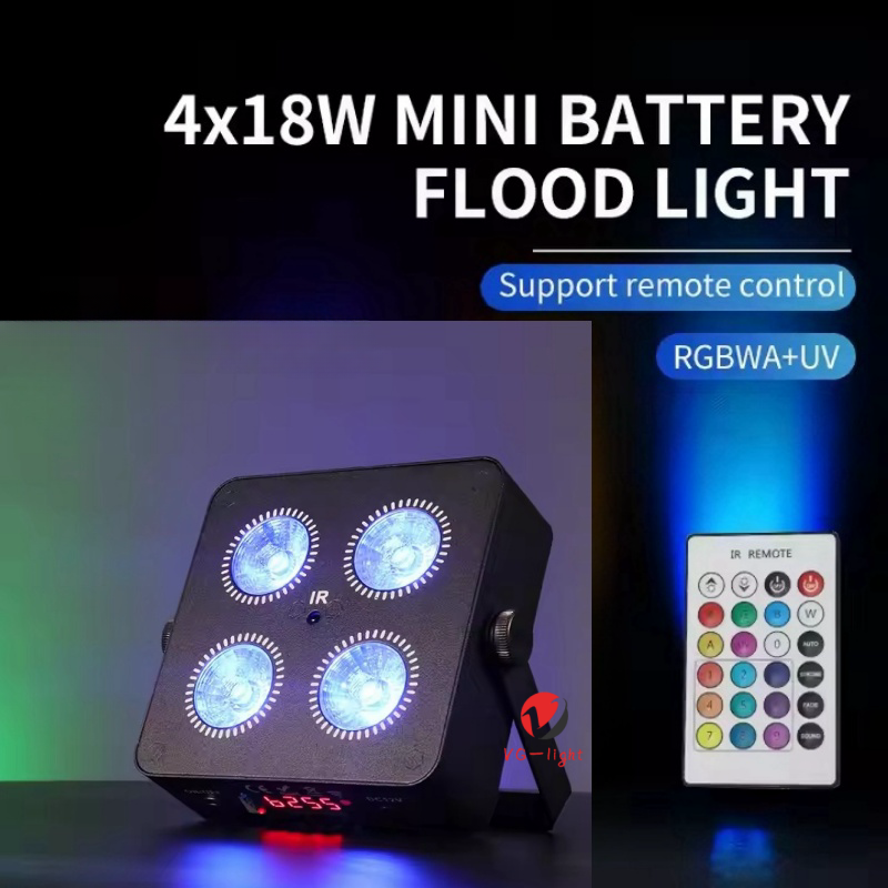 Wireless Stage Par Light Battery Uplight 4x18W 6in1 RGBWA UV Rechargeable+Case