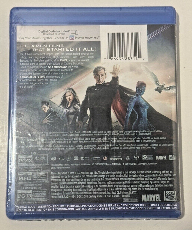 X-Men: 3-Film Collection (Blu-Ray/DVD, 2021, 6-Disc Set, W/Slipcover)New/Sealed