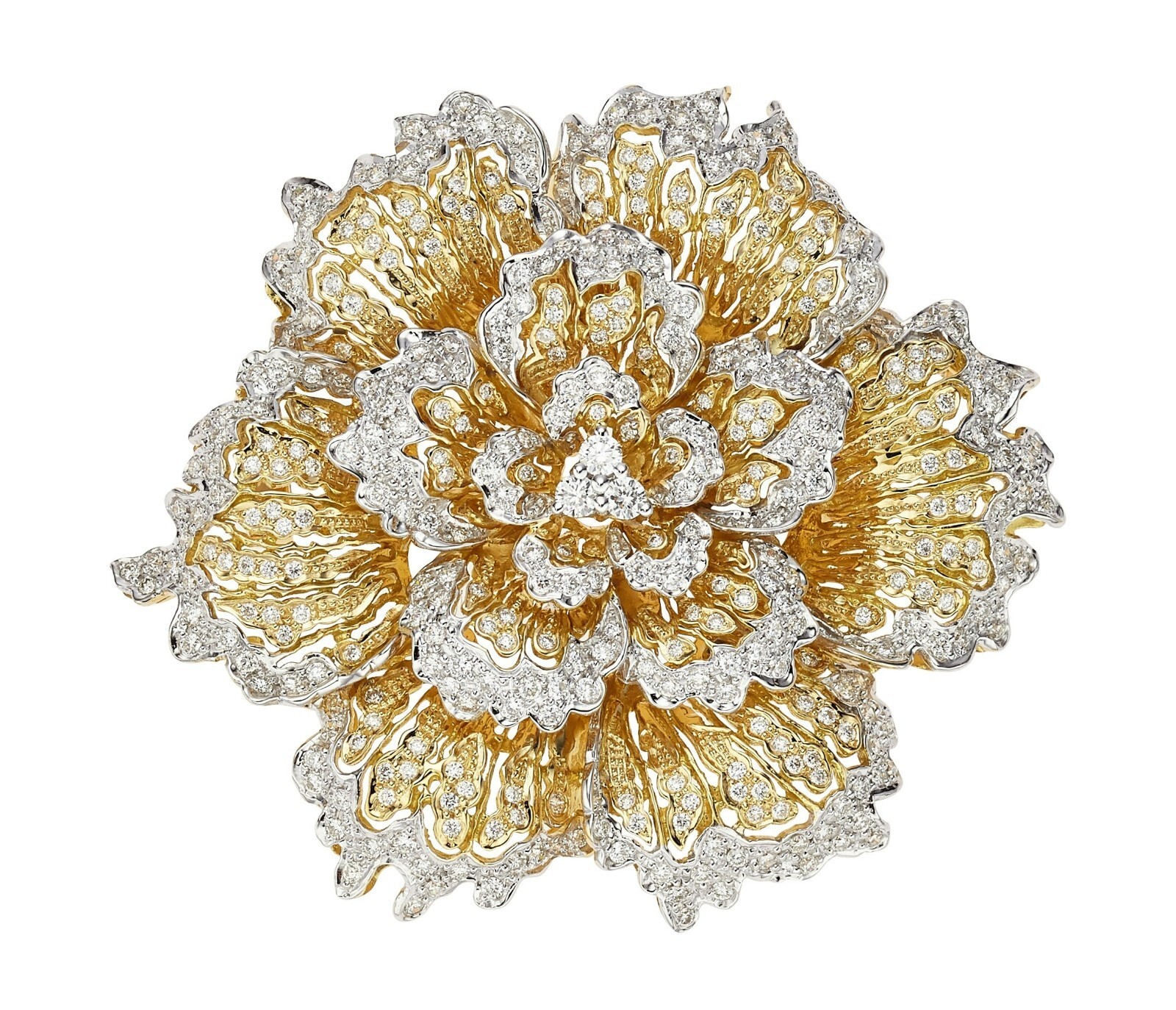 Spilla di fiori di grande oro bicolore 18K con diamanti da 4,15 ct splendidi!