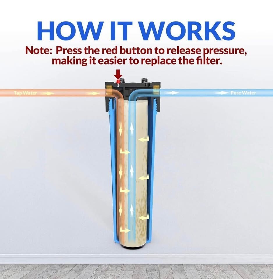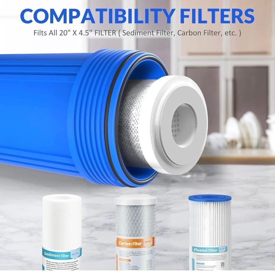 SimPure Whole House Water Filter Housing (DB20P), 20" x 4.5" Sediment Carbon Filter Universal Housing, Pre-Filtration System for Well and City Water, 1" NPT Port, Pressure Release