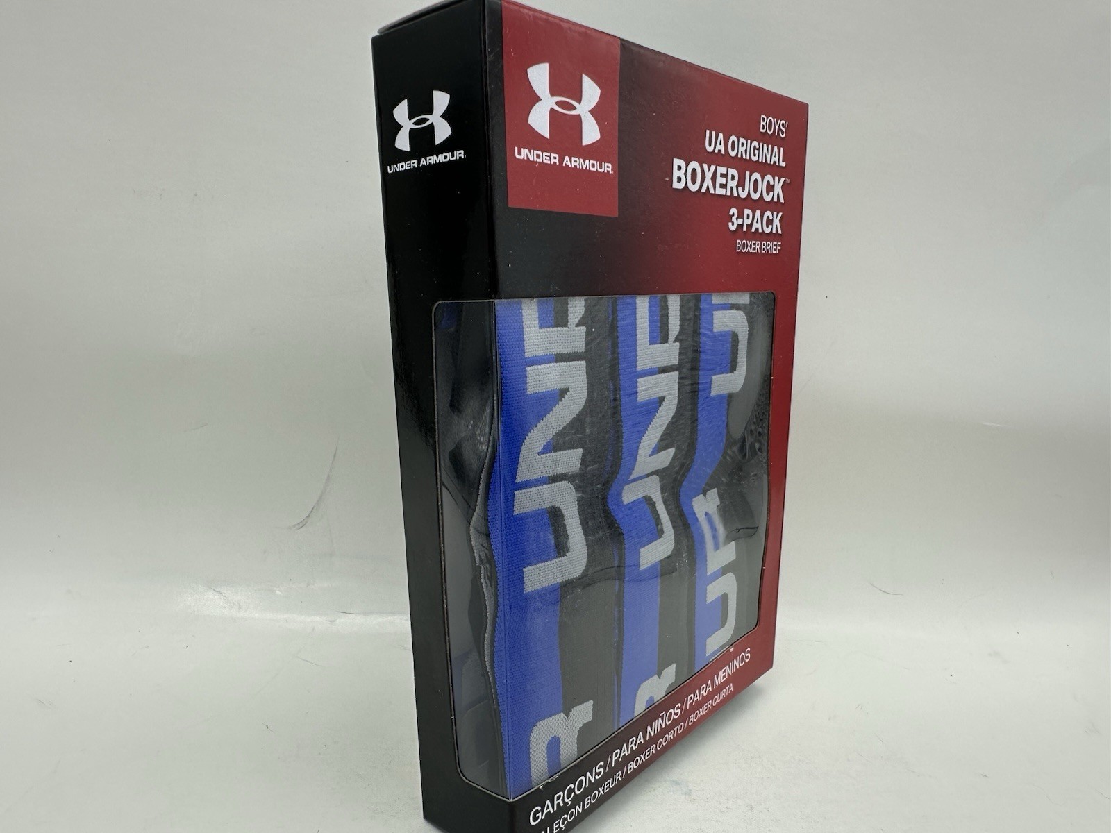 Under Armour Boys Performance 3-Pack Boxer Briefs Underwear, Blue, Small, Sealed