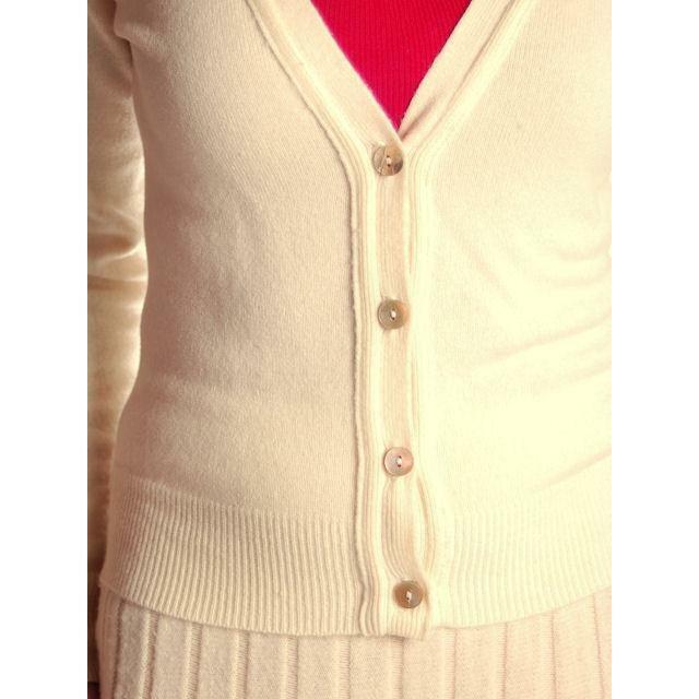 100% imported cashmere. Abalone shell buttons.