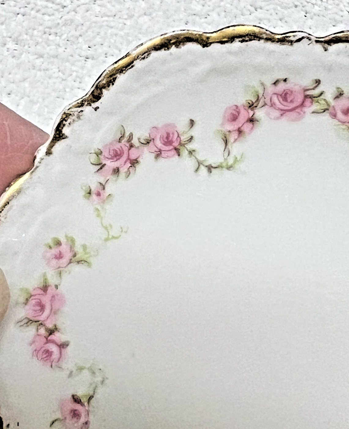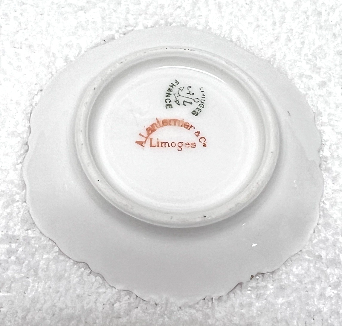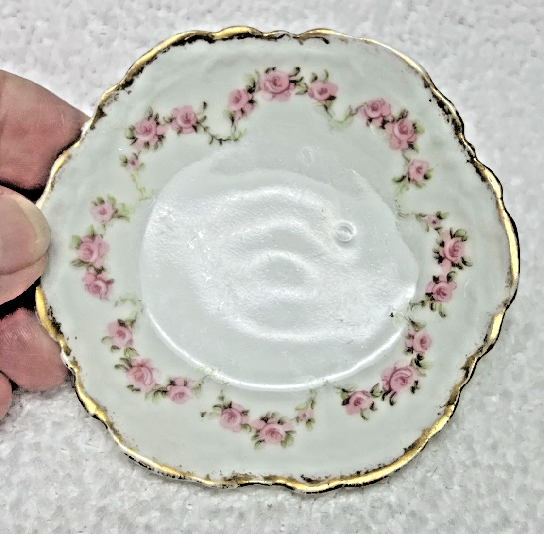 A. Lanternier Limoges China Pink Rose Garland Butter Pat Butterpat w Gold 31/4" No chips or flakes the gold has some wear