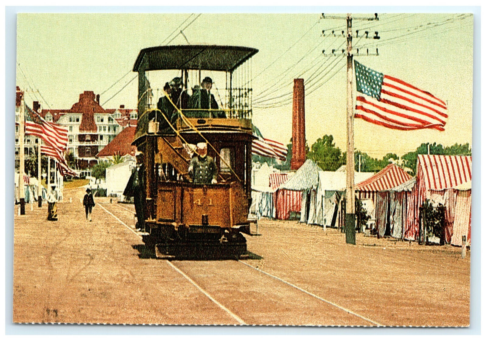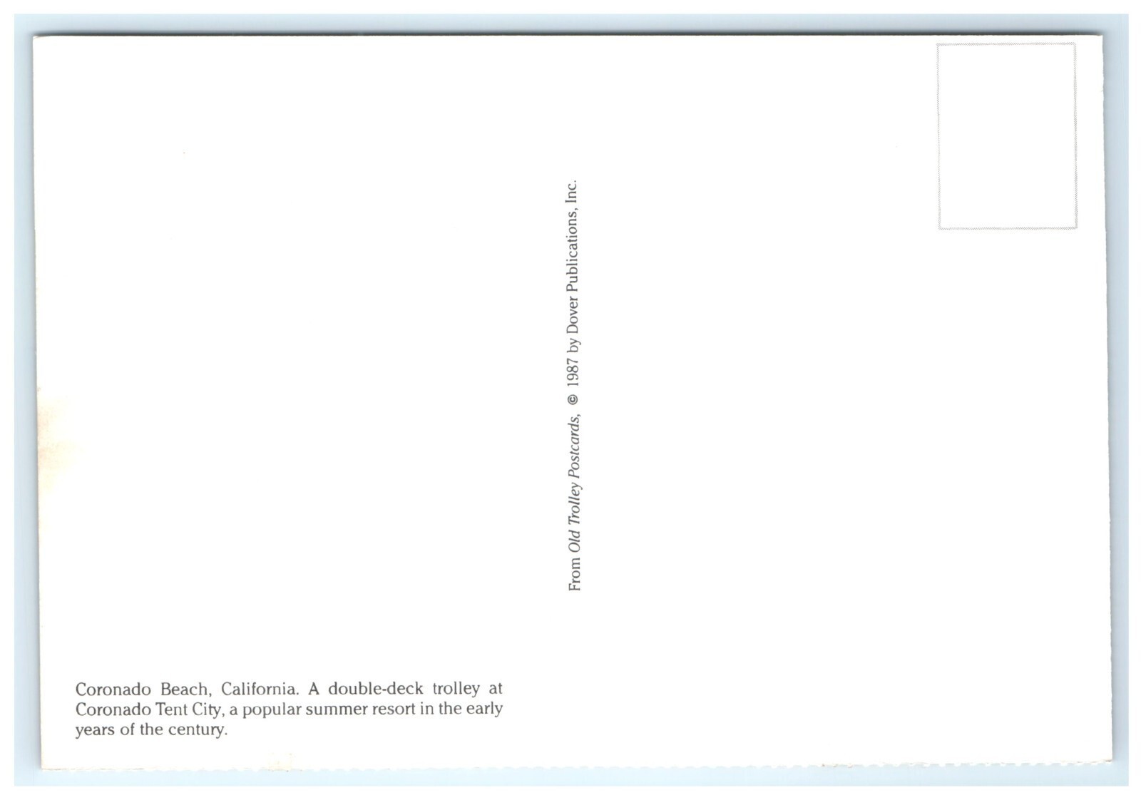 Vintage Divided Back Postcard Depicting a Double Deck Trolley at Coronado Tent City Summer Resort in Coronado Beach California.