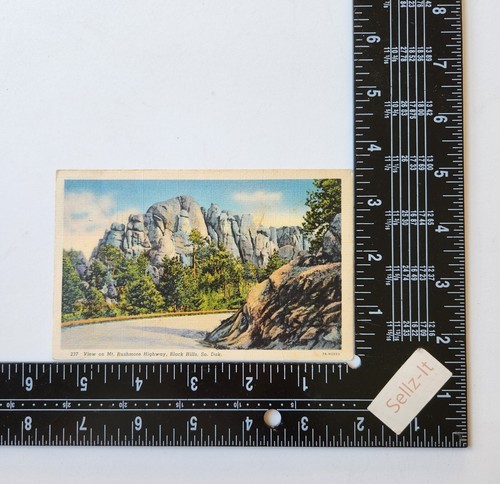 Mt Rushmore Highway Mountain Landscape Black Hills SD Linen Postcard