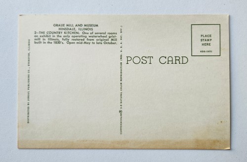 Vintage Divided Back Chrome Postcard Featuring the Country Kitchen at Graue Mill and Museum Located in Hinsdale Illinois.