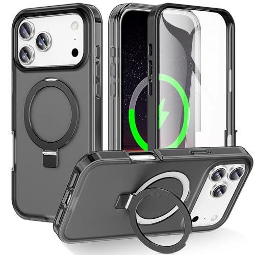 Case for iPhone 17 (Color: Black) Built-in Screen Protector Ring Hard Silicon Ba