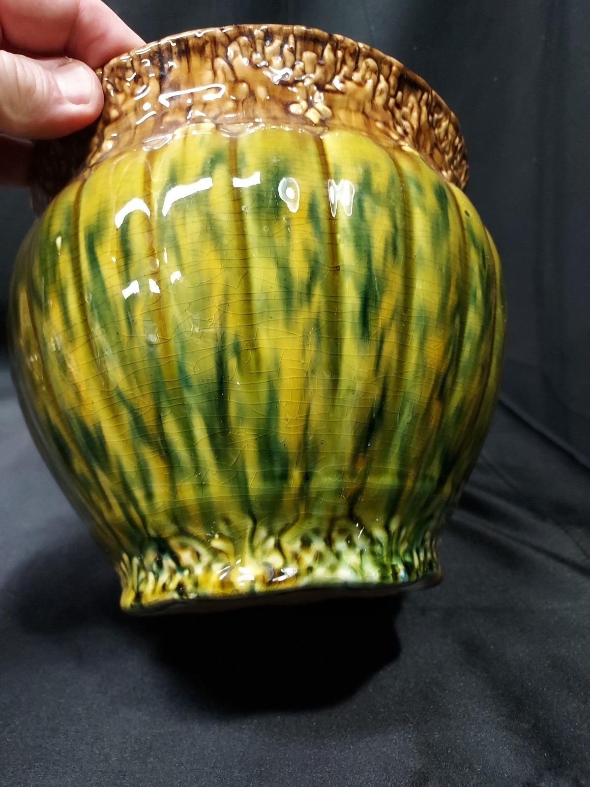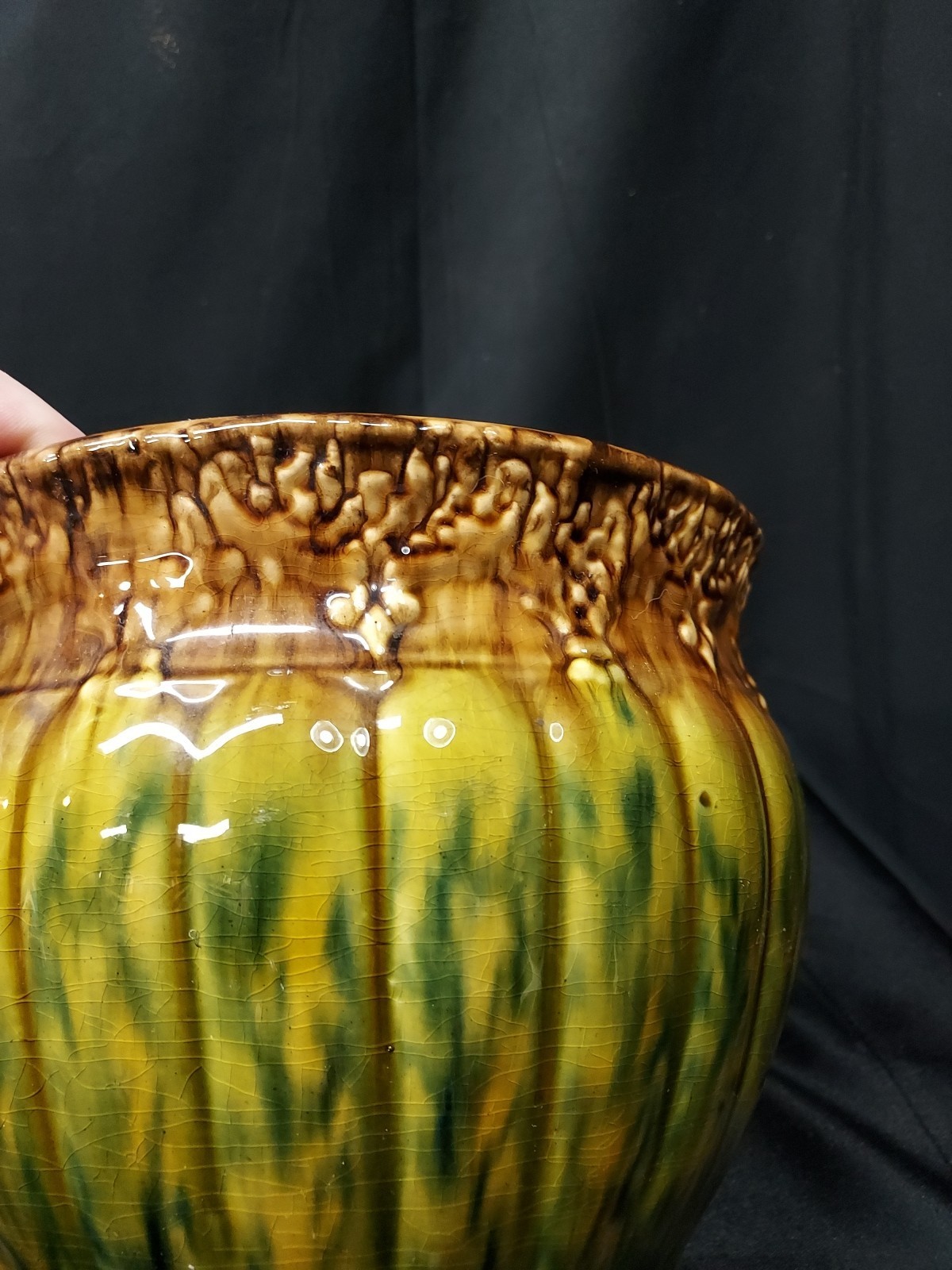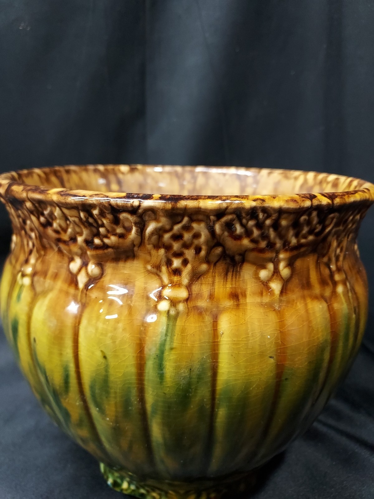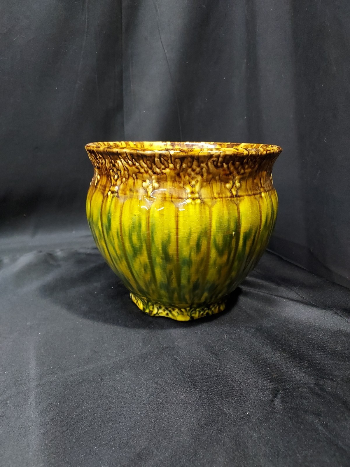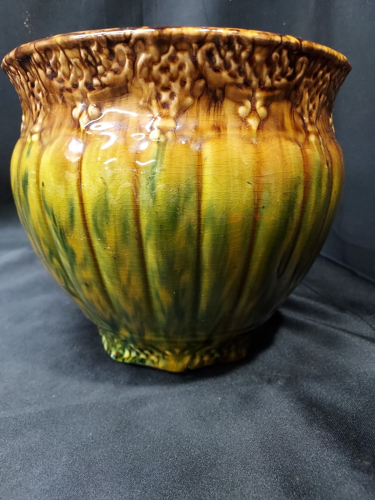 Fabulous 1920s Majolica WELLER ? Art Pottery Jardiniere BROWN GREEN BLUE Planter