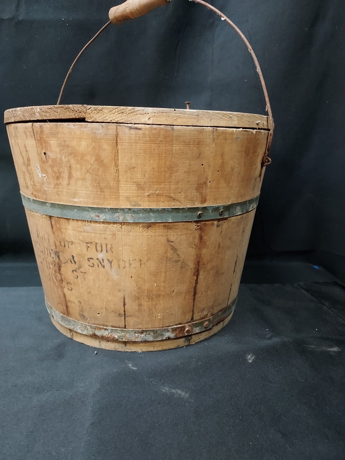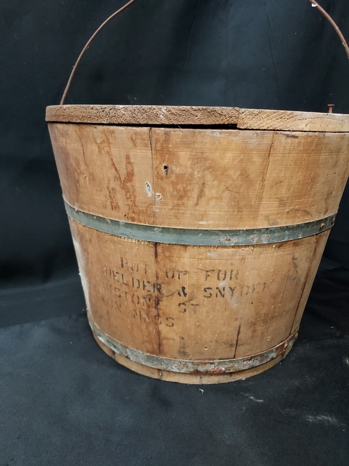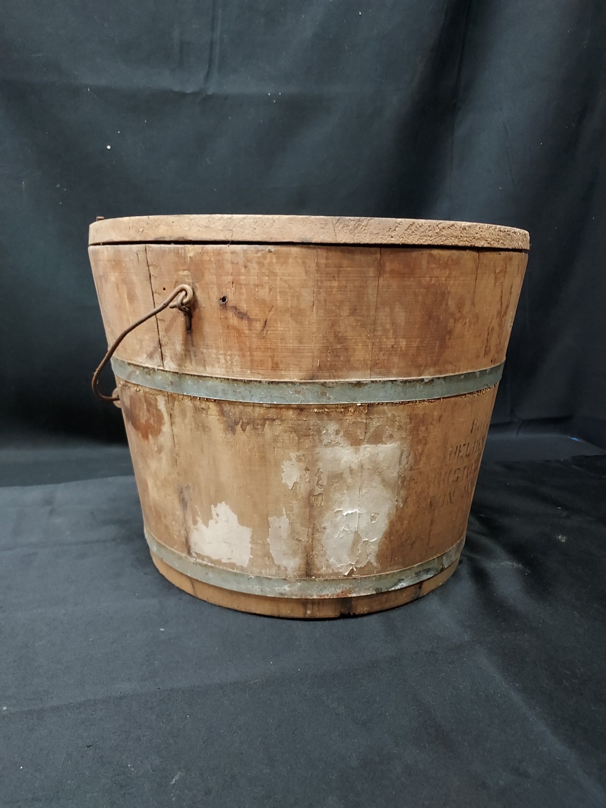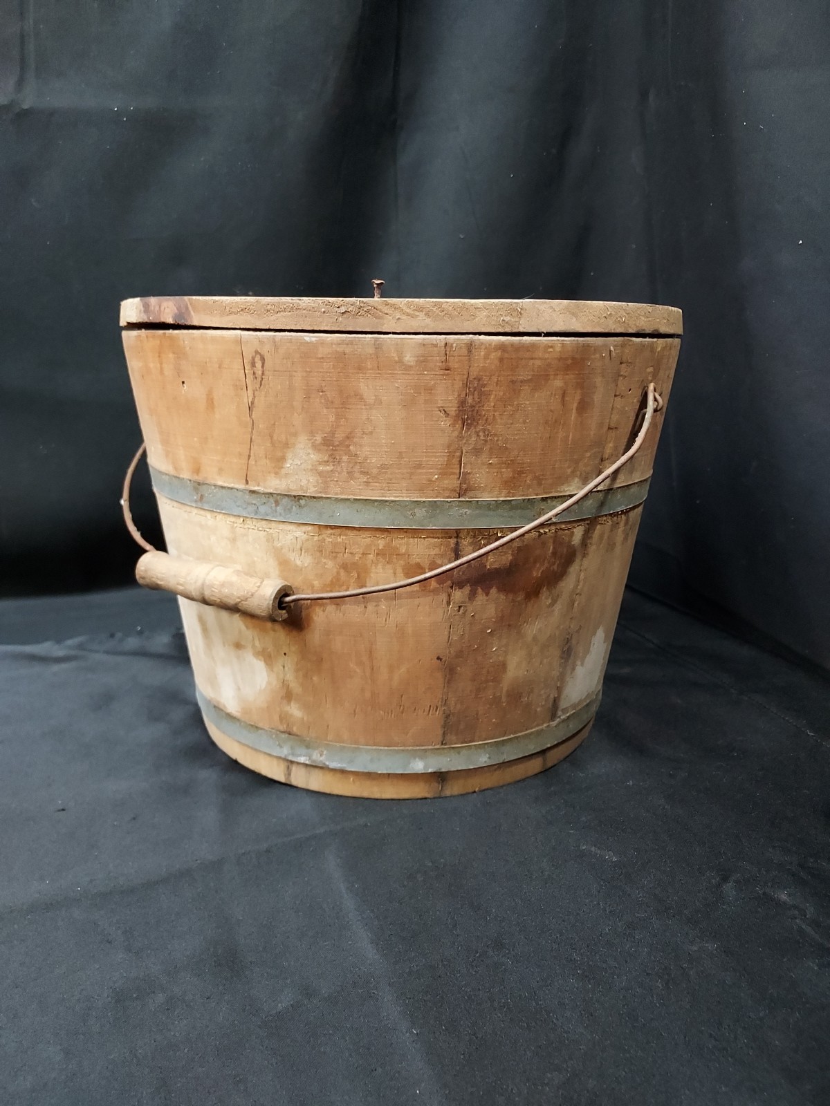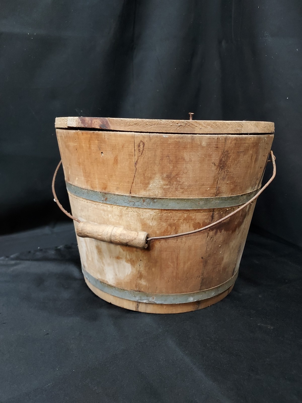 Antique Apple Jelly Wooden Wood Banded Staved Bucket Pail and Lid Primitive