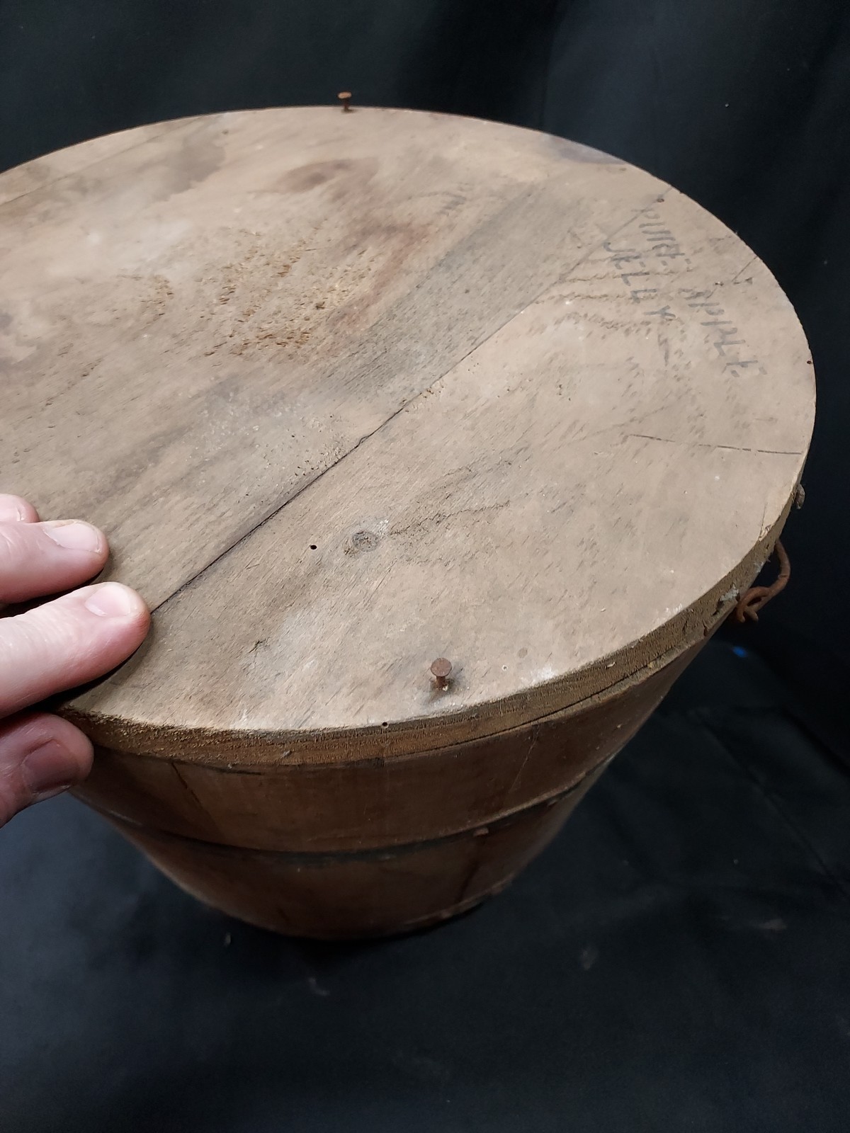 Antique Apple Jelly Wooden Wood Banded Staved Bucket Pail and Lid Primitive . Shipped with USPS Ground Advantage.
