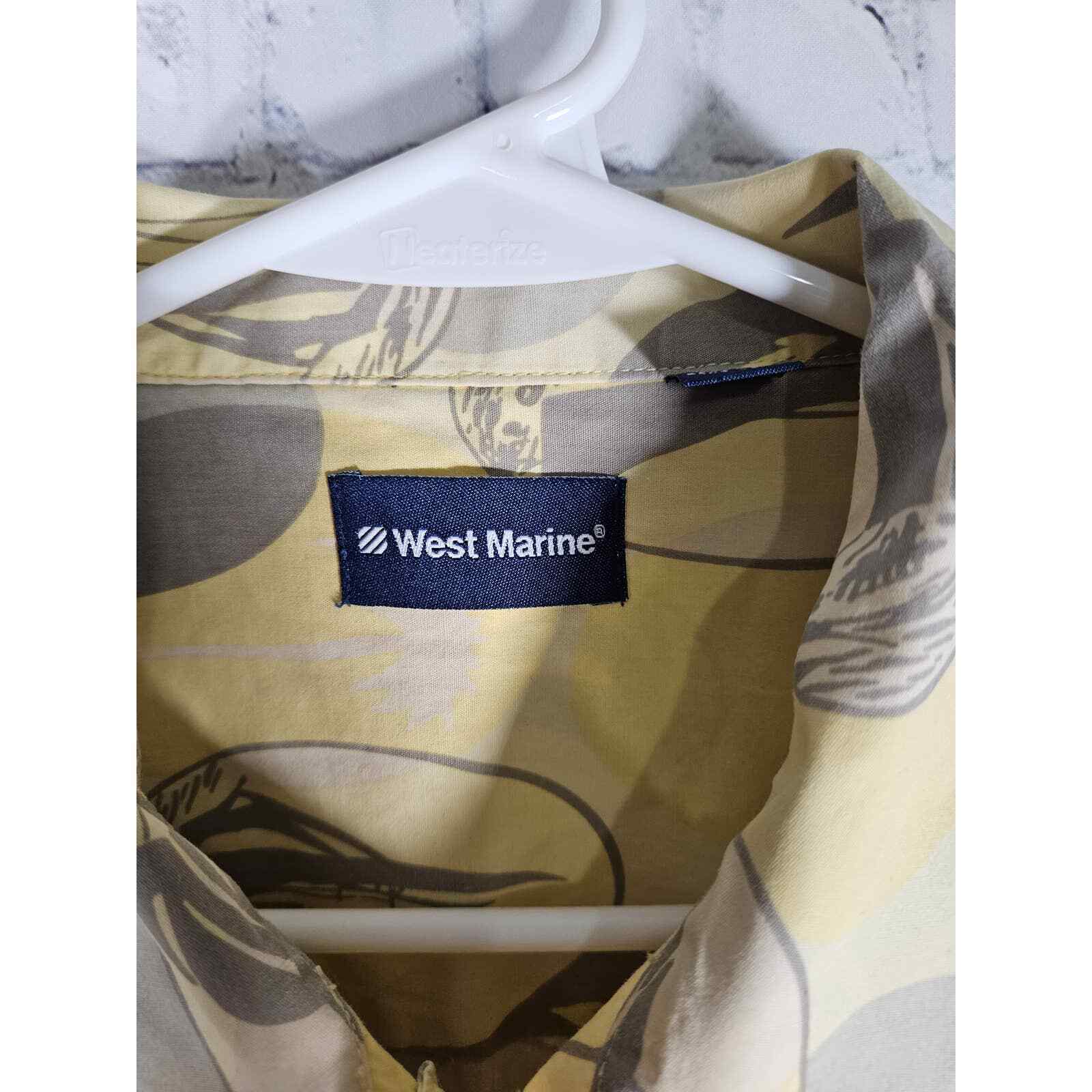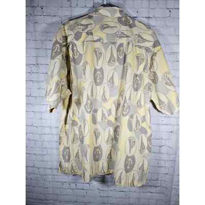 West Marine Mens Short Sleeve Boat Shirt Hawaiin Style Yellow Gray XL Cotton