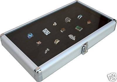 2Glass Top Black Jewelry Display Case 144 Slot Ring Tray/Aluminum Ring case box