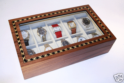 10 WATCH CASE Walnut 65mm Watches Storage Organizer Box display Glass Top