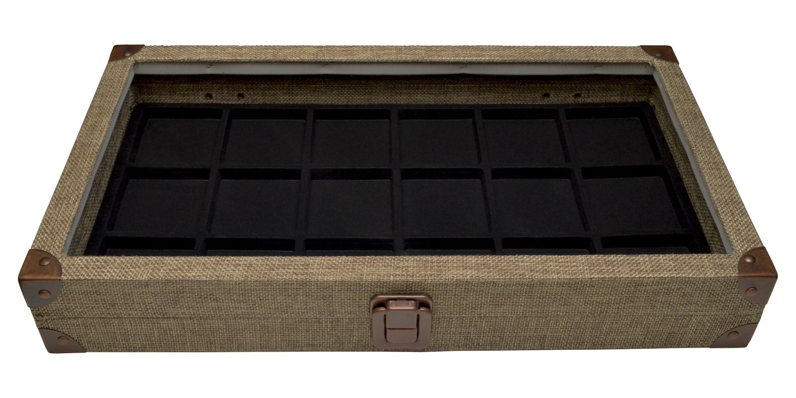Burlap Dark Beige Metal Clasp 18 Display Pocket Watch Show Case