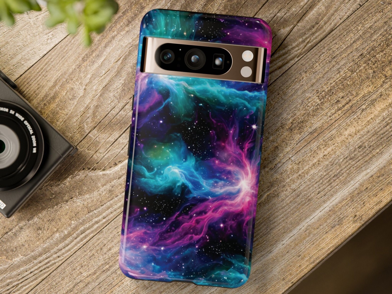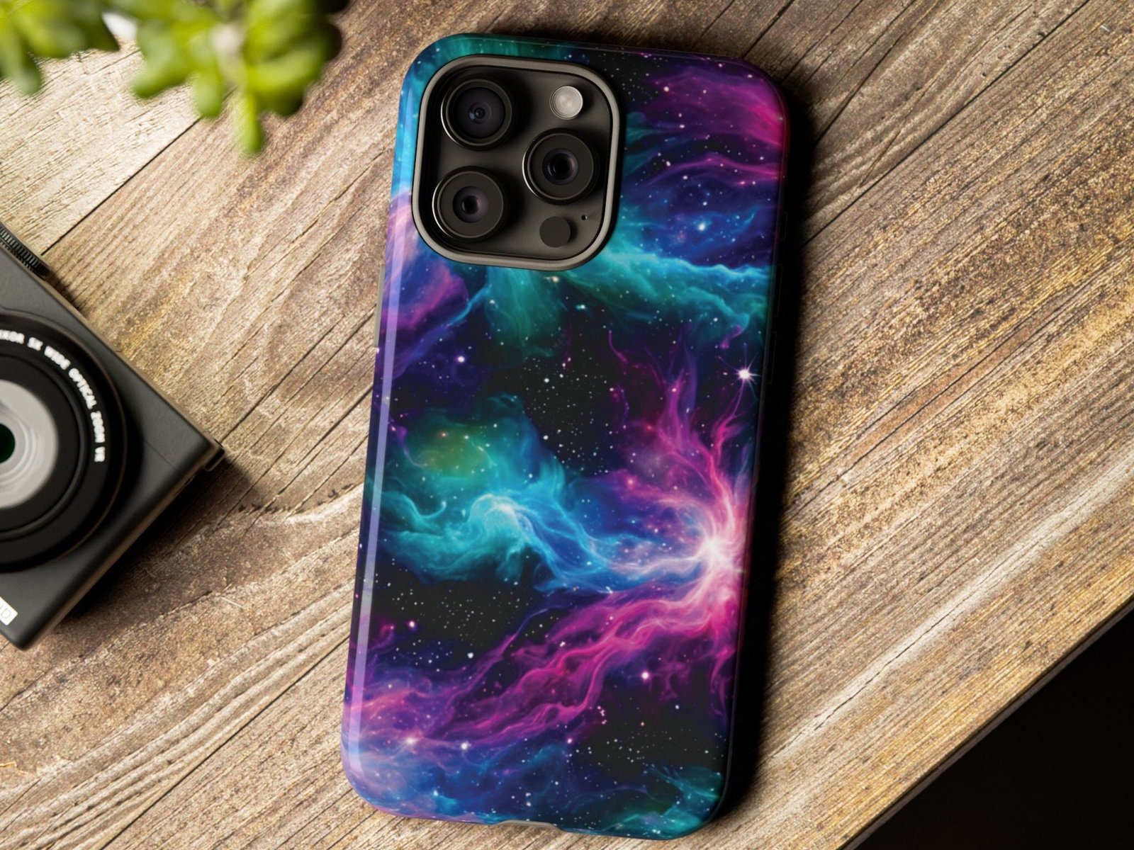 Introducing our Blue Nebula Celestial Background phone case, a stunning design that brings the beauty of the universe to your device. Featuring a vibrant depiction of a blue nebula, this case adds a touch of cosmic wonder to your everyday life. Perfect for all phone models, it combines style and protection, making it a standout accessory. Elevate your phone's look with this celestial masterpiece?an ideal purchase for space enthusiasts and anyone who loves the magic of the cosmos!