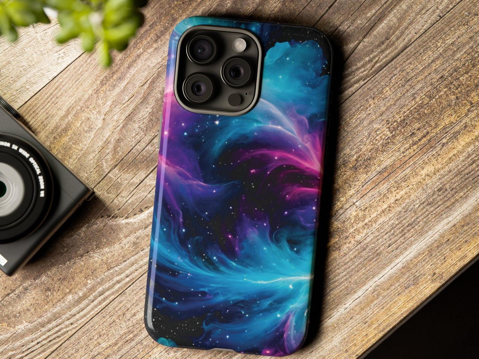 Introducing our Blue Nebula Celestial Background phone case, a stunning design that brings the beauty of the universe to your device. Featuring a vibrant depiction of a blue nebula, this case adds a touch of cosmic wonder to your everyday life. Perfect for all phone models, it combines style and protection, making it a standout accessory. Elevate your phone's look with this celestial masterpiece?an ideal purchase for space enthusiasts and anyone who loves the magic of the cosmos!