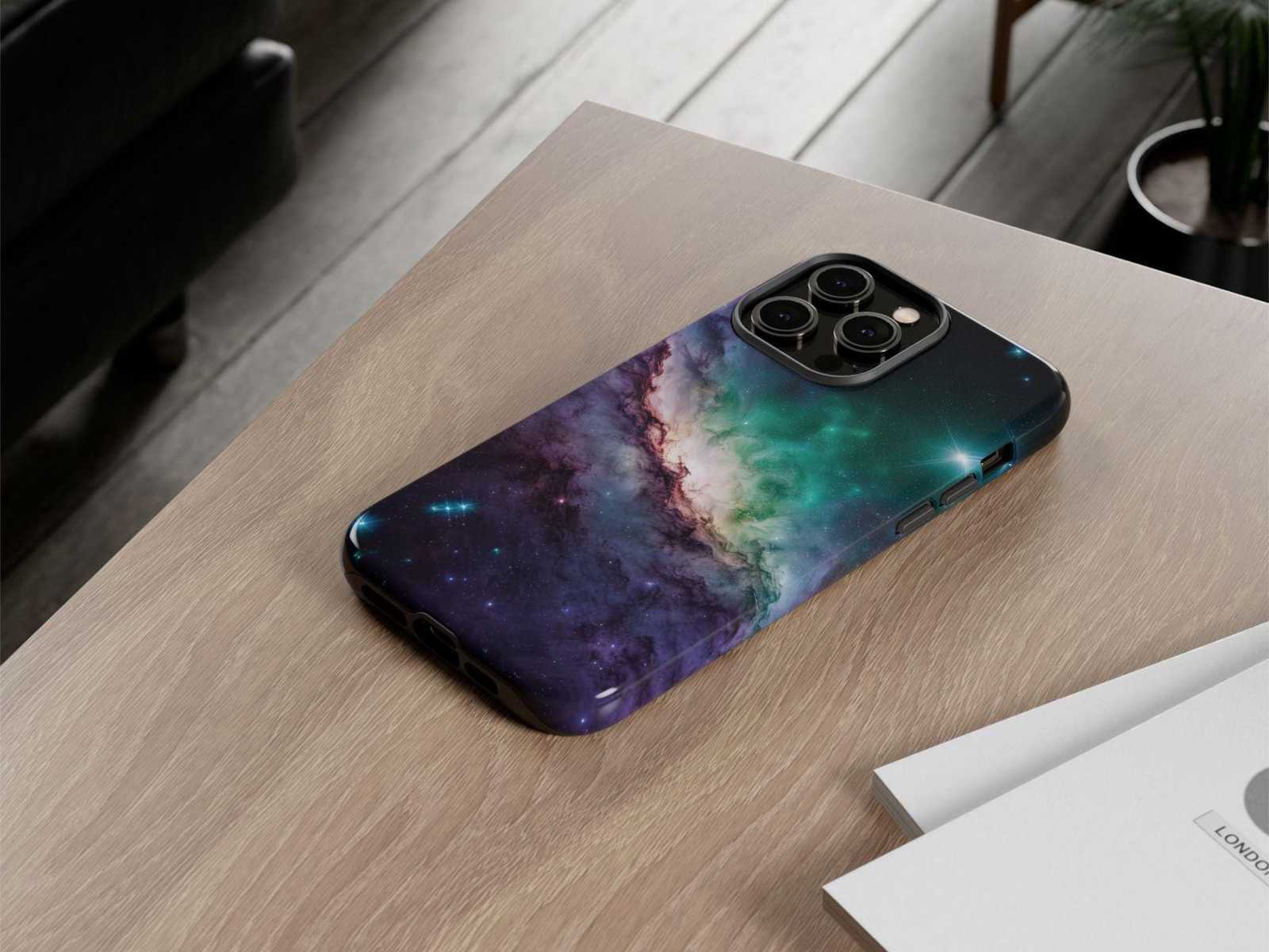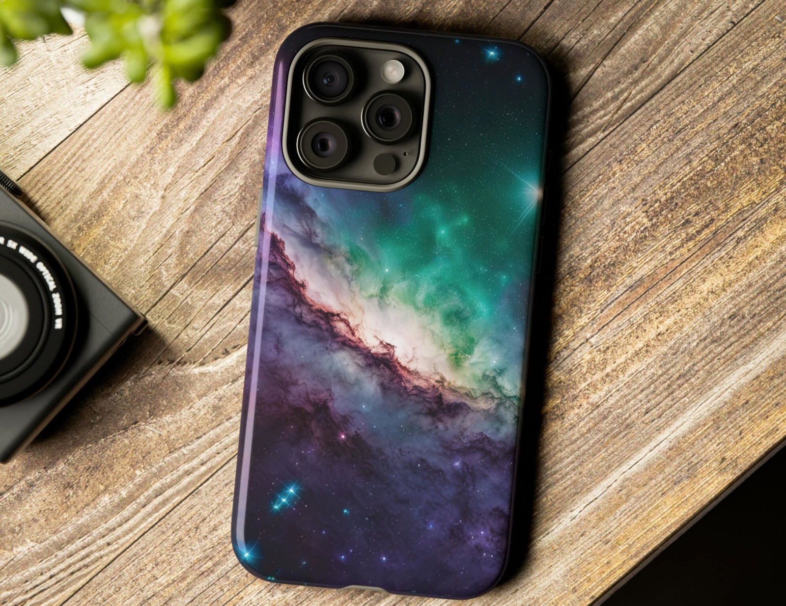 Step into the enchanting realm of outer space with our mesmerizing phone case design featuring a breathtaking backdrop of nebulae, galaxies, and stars. With the option to personalize, you can make this celestial masterpiece uniquely yours, adding a touch of cosmic flair to your everyday essentials. Elevate your style and spark conversation wherever you go.